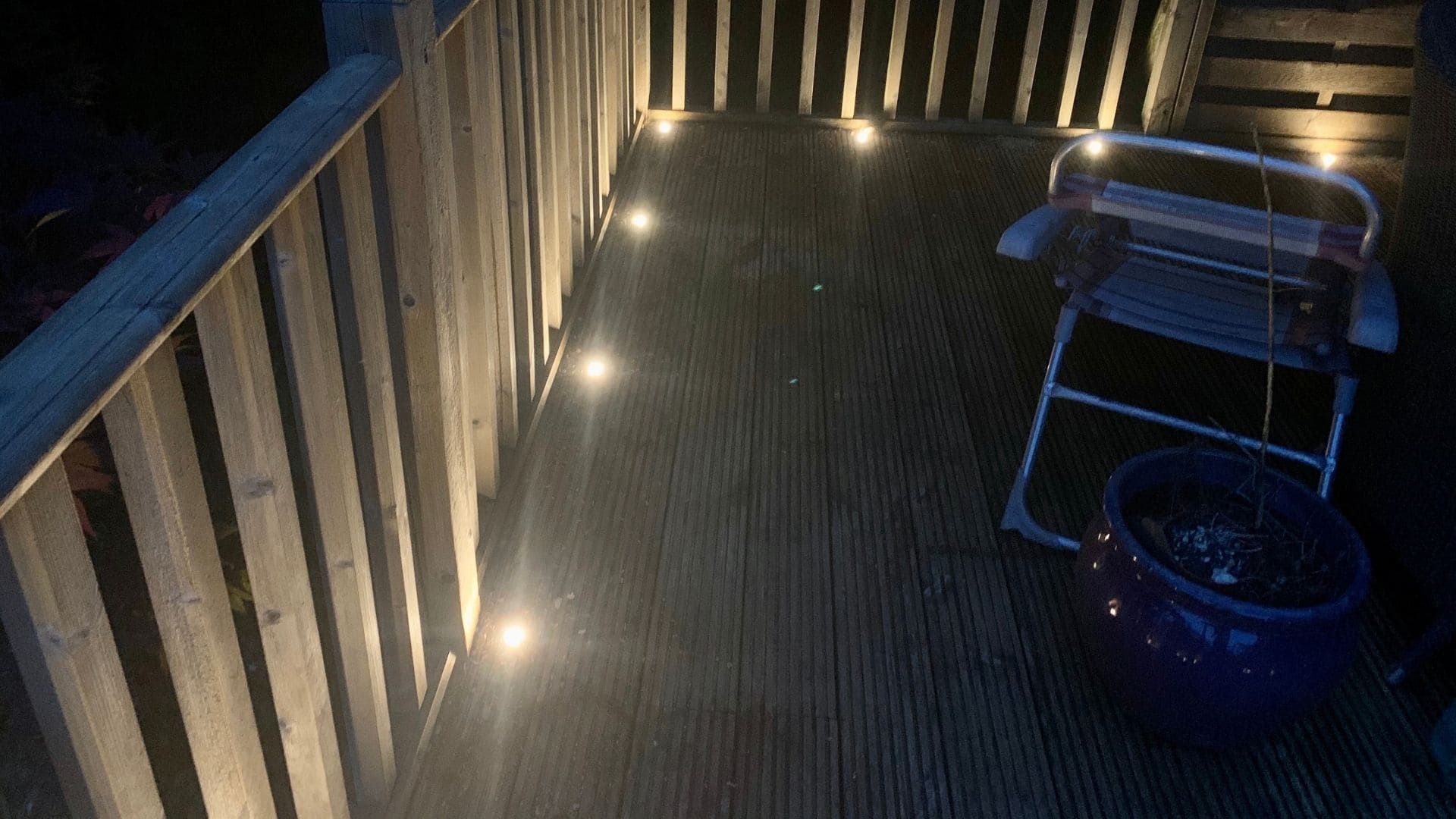 Recessed lights work better on decks with low or no railings, or where you want to light the walking surface itself rather than relying on ambient glow from elevated fixtures.